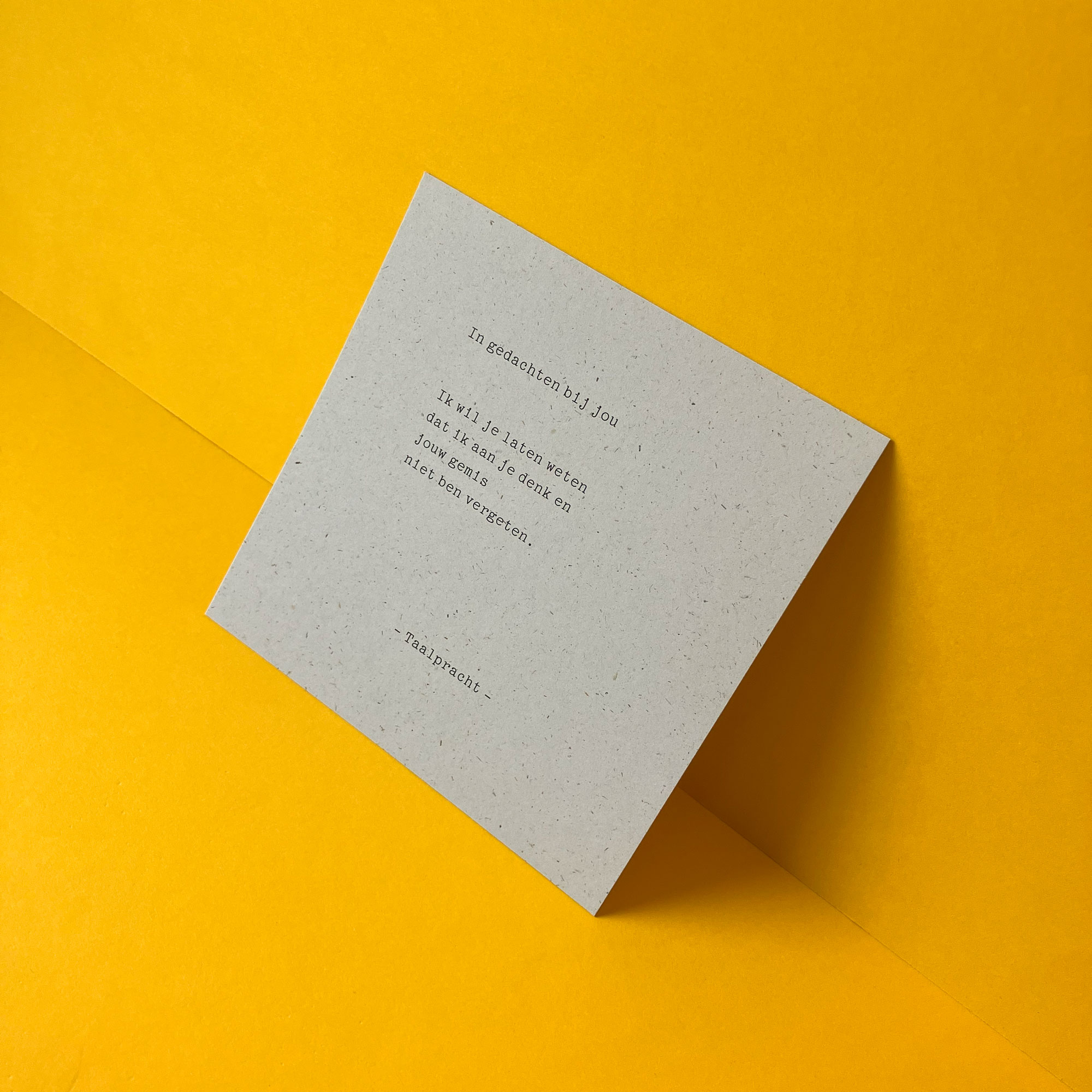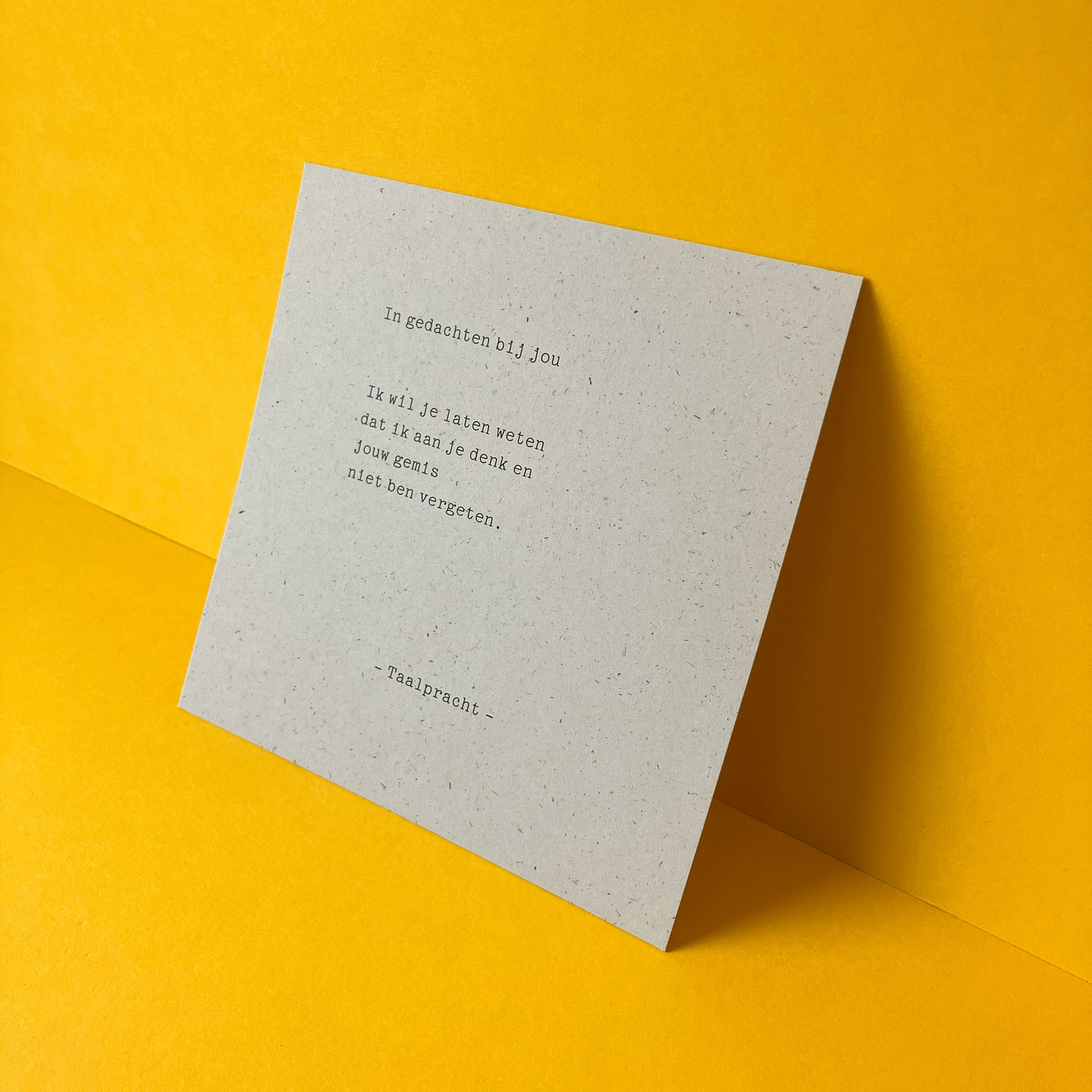 Verlies gaat nooit over. Het wordt anders. Sommige dagen blijven lastig. Voor die momenten is er 'In gedachten bij jou'.